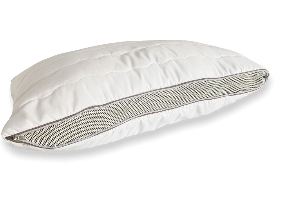 Gracias a su construcción tipo gusset con cierres, esta almohada permite modular el nivel de firmeza acorde a tus necesidades y gustos al dormir.